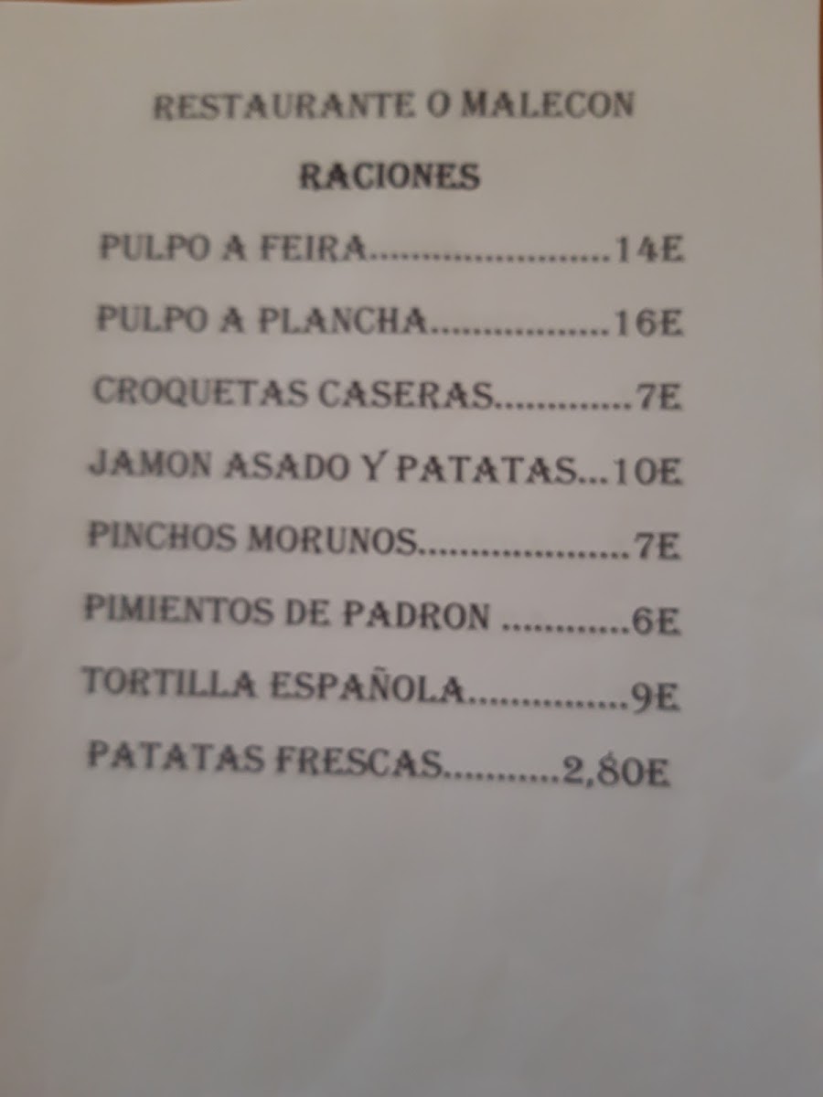 The menu at Restaurante O Malecon offers a satisfying showcase of Galician coastal cuisine, balancing traditional flavors with generous portions and fresh ingredients. Standout seafood dishes such as Calamares A la Romana and Calamares Fritos highlight perfectly crisp textures, while regional specialties like Pulpo A Feira deliver authentic taste with tender octopus and classic seasoning. For those seeking variety, the Mariscada provides an abundant selection of shellfish, complemented by delicacies like Navajas A la Plancha and Almejas A la Marinera, both emphasizing freshness and simple, flavorful preparation. The menu also caters to heartier appetites with options like Bacon Queso Jamon Huevo, offering a more indulgent alternative. To finish, desserts such as Torrijas bring a sweet, comforting end to the meal. Overall, the restaurant’s menu reflects a strong commitment to local culinary traditions while ensuring there is something enjoyable for every diner.